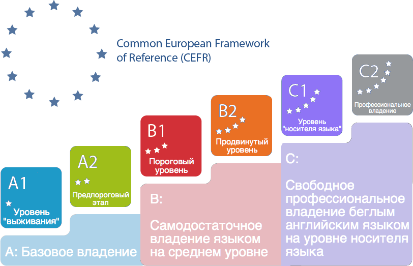 Каждый из этих уровней разбивается еще на два, которые уже обозначаются буквами – получается A1, A2, B1, B2, C1, C2 – 6 уровней.